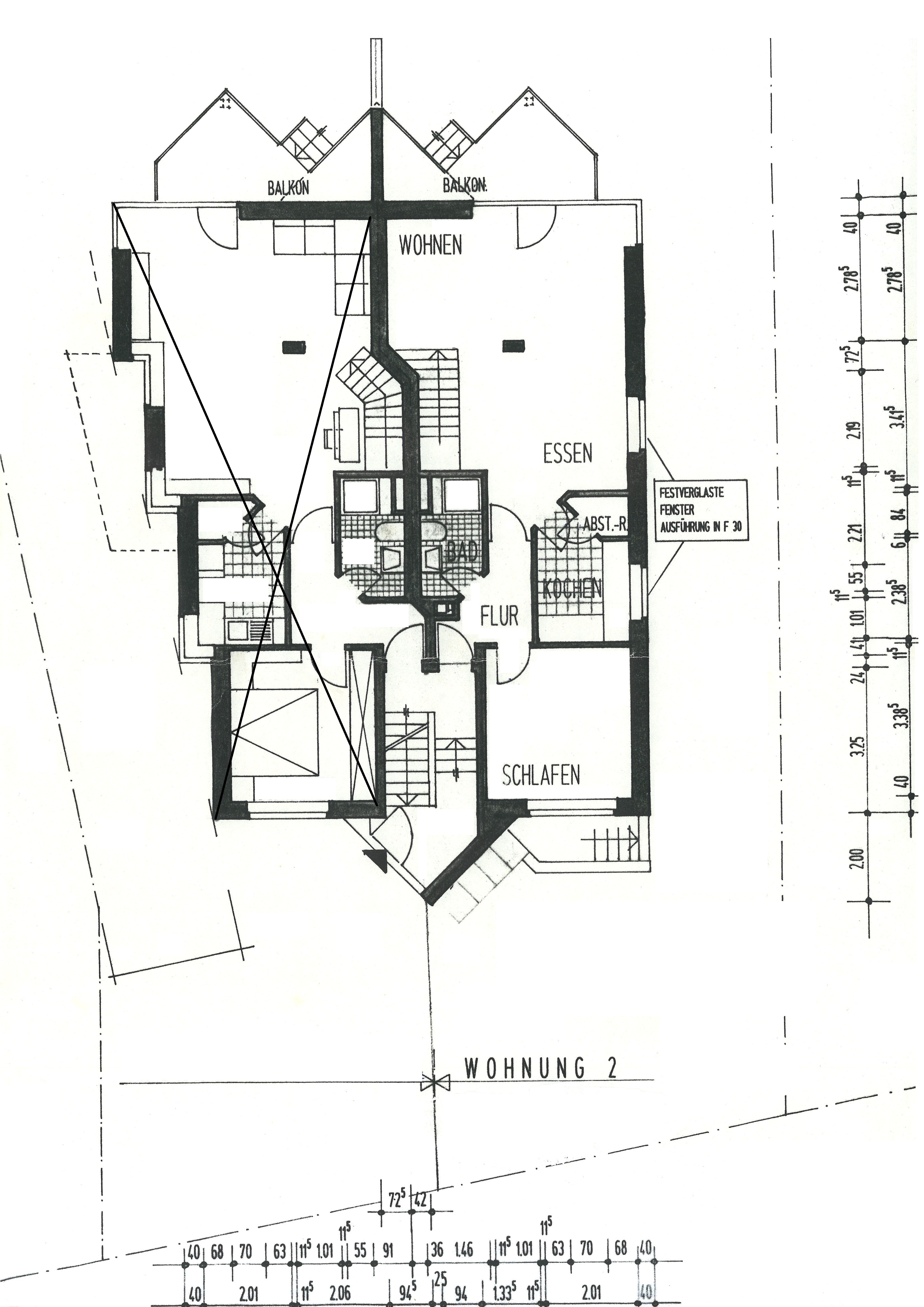Diele/Flur, Schlafzimmer, Küche, Badezimmer, Wohn- und Esszimmer mit Balkon
