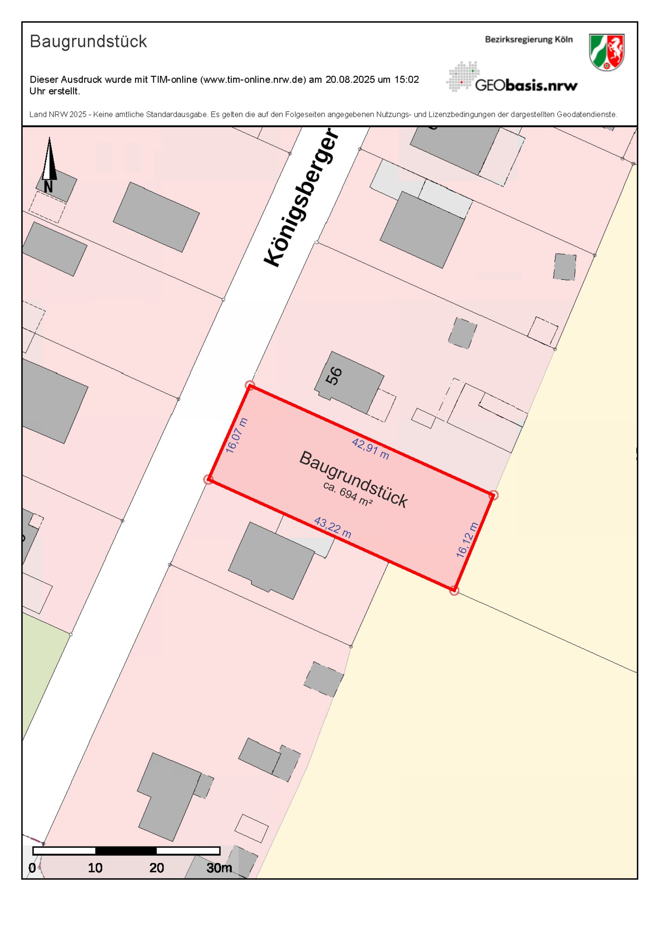 Das hier zum Verkauf stehende Baugrundstück liegt planungsrechtlich im sogenannten Innenbereich gemäß § 34 BauGB und weist eine dörfliche Prägung entsprechend § 5 BauNVO auf. Das Grundstück verfügt über eine Straßenfront von etwa 16 m und eine Grundstückstiefe von rund 43 m.