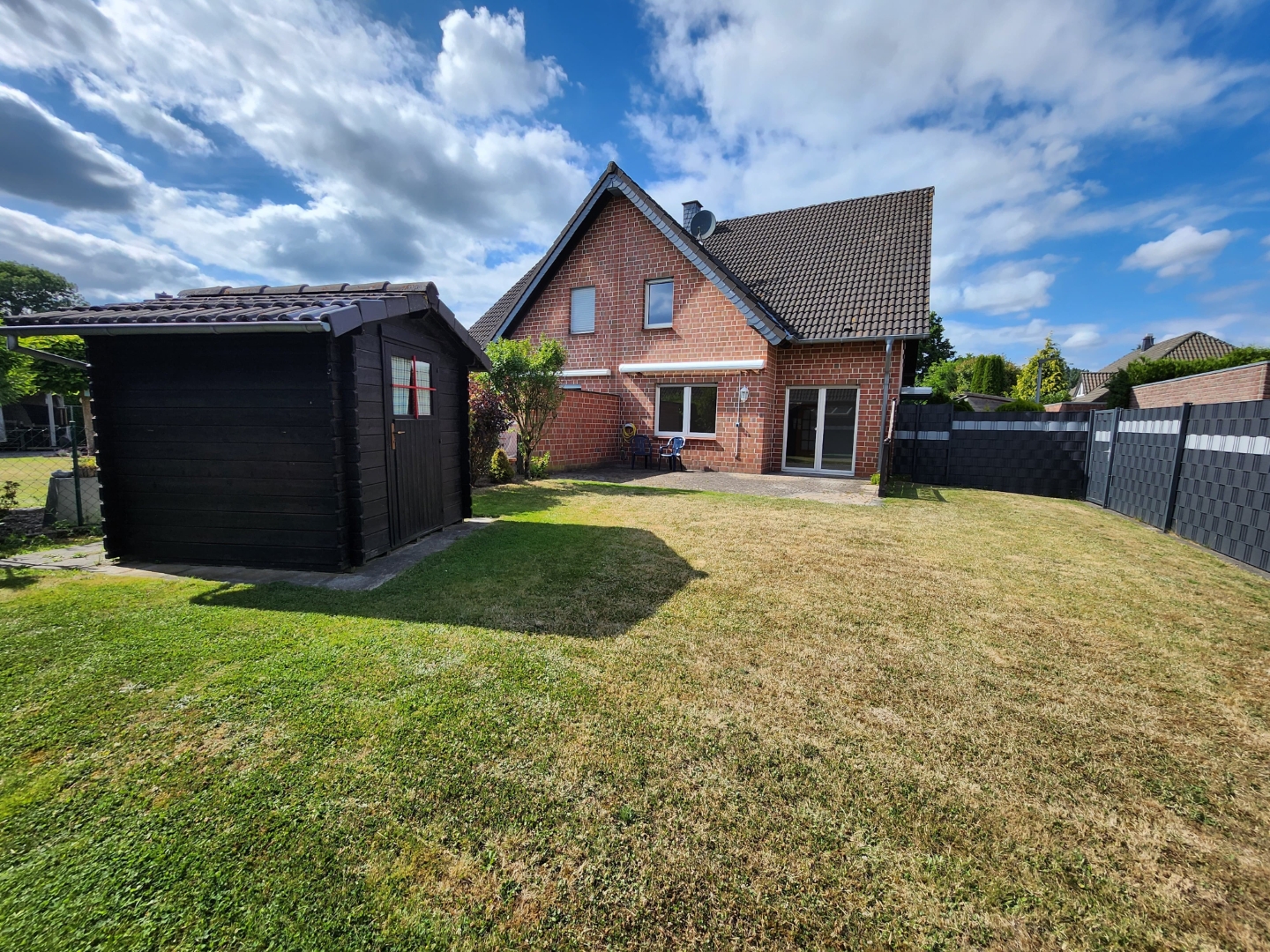 Der großzügige Garten mit einer Fläche von ca. 454 m² ist liebevoll und zugleich pflegeleicht angelegt – ideal zum Spielen, Entspannen oder für gesellige Grillabende im Grünen.