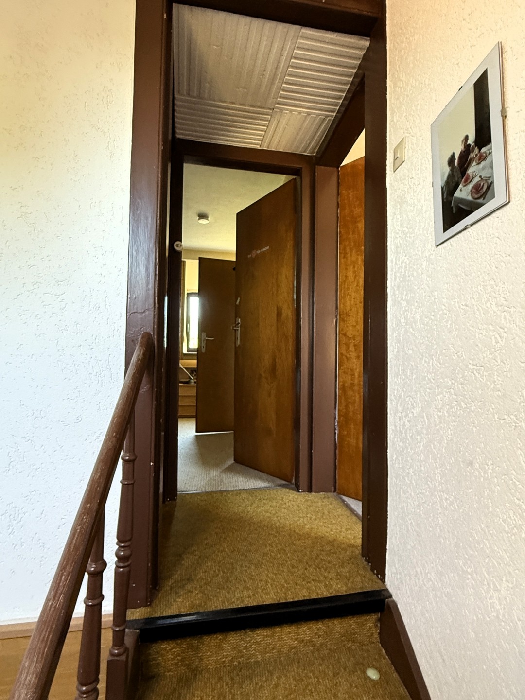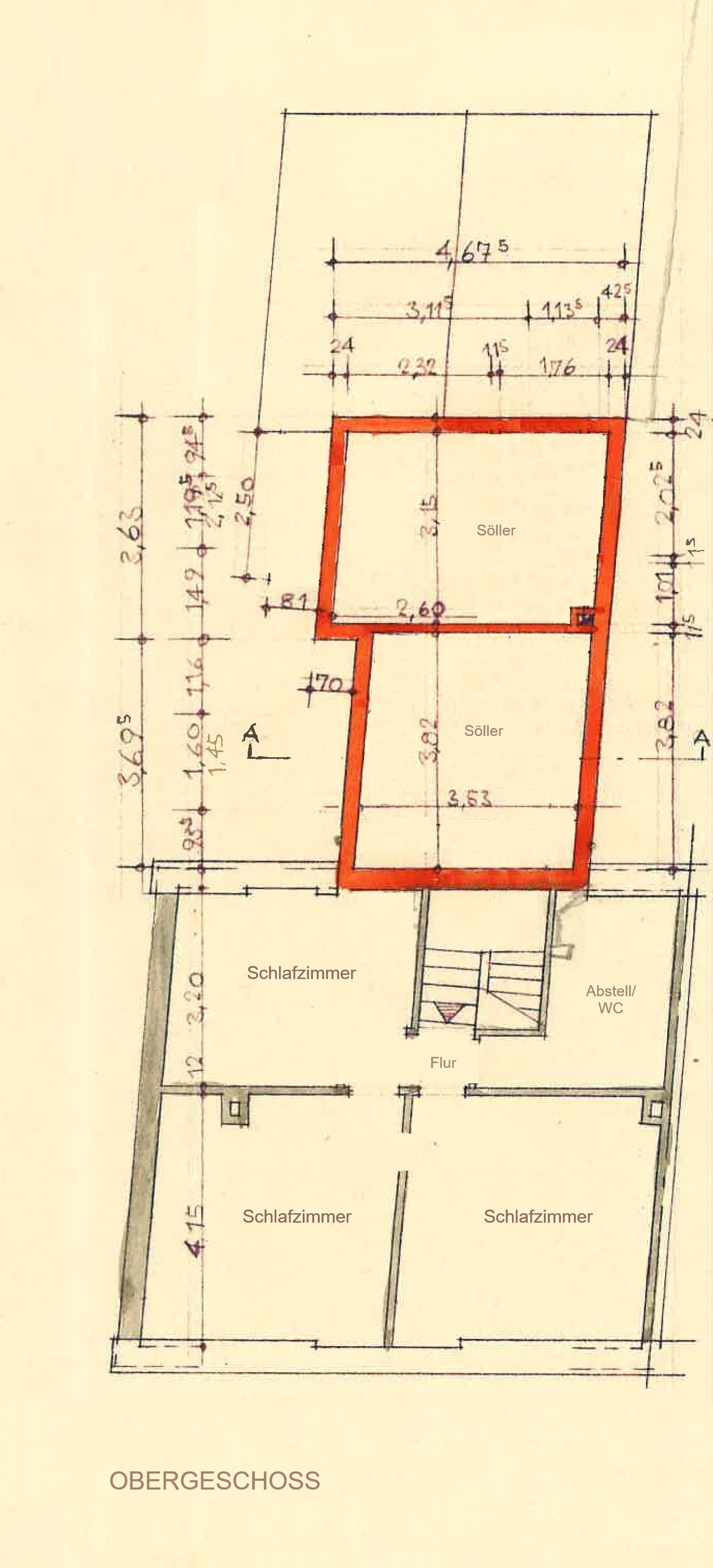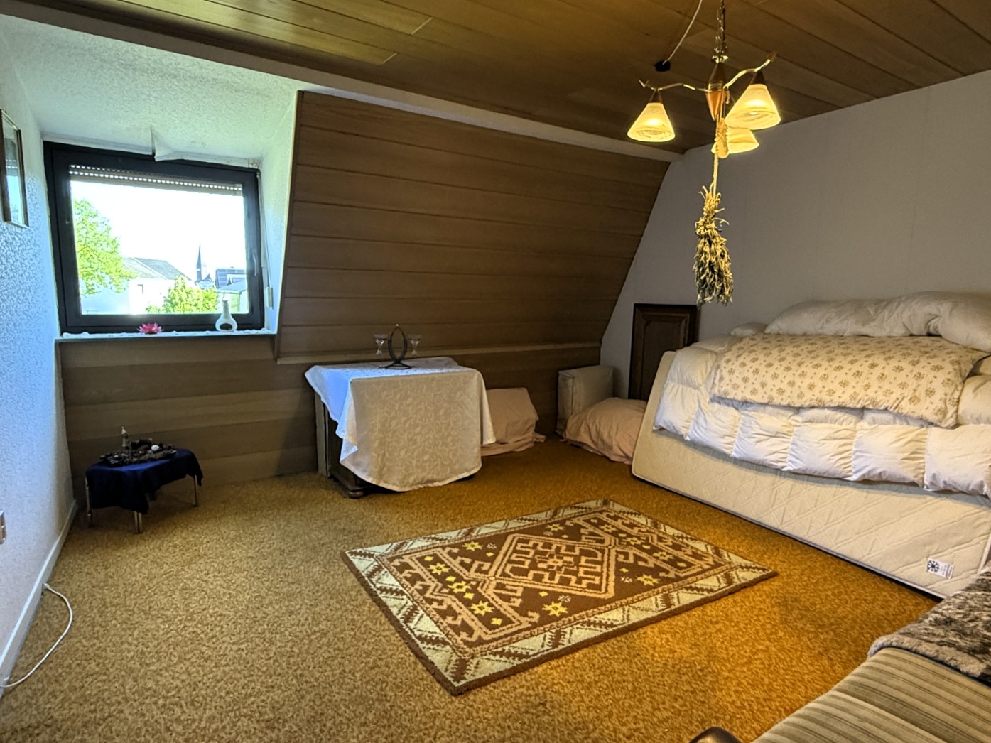 Im Dachgeschoss stehen drei Schlafzimmer zur Verfügung. Hiervon wurde ein Raum als Durchgangsraum gestaltet. Dieser kann mit geringem Aufwand abgetrennt werden. Zudem gibt es einen kleinen Abstellraum mit Toilette, der modernisiert werden sollte.