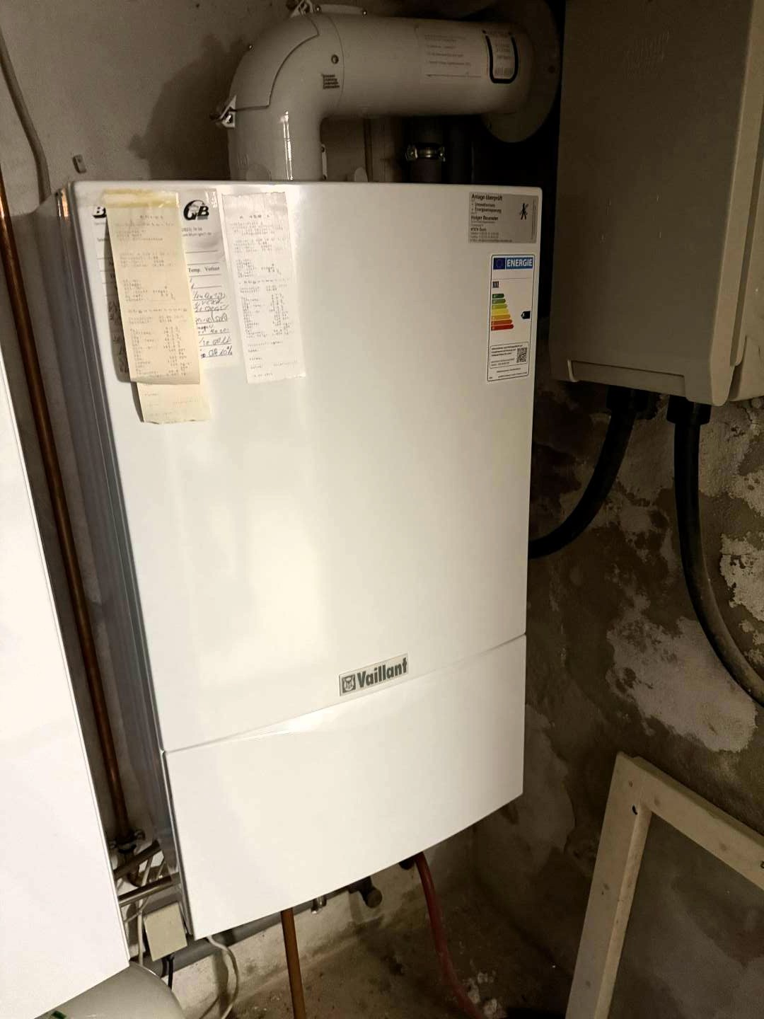 Ein Teilkeller beherbergt neben Stauraum auch die Erdgas-Zentralheizung mit Warmwasserspeicher (Vaillant, Baujahr 2004).